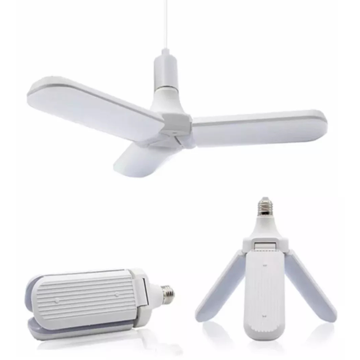 Transforma tu espacio con la revolucionaria Ampolleta LED 3 Aspas 26W. Ilumina cada rincón con su diseño ajustable y potente salida de 6000 lúmenes, proporcionando una luz diurna brillante de 6500 K. Descubre la eficiencia energética sin precedentes con la versatilidad que esta luz LED aporta a tu garaje, taller, sótano o cualquier otro espacio de trabajo. - Diseño Ajustable: Cuatro paneles LED ajustables que se pliegan a 90 grados. Ángulo de cobertura de 360 grados para eliminar zonas oscuras y reflejos.- Super brillante: Luz diurna de 6500 K para una iluminación clara y nítida. Ahorro energético de más del 85%, reduciendo significativamente las facturas de electricidad.- Uso Amplio: Base mediana E26/E27, perfecta para garajes, sótanos, talleres, almacenes y más. Ideal como luz de garaje, luz de techo baja/alta, luz de trabajo LED o bombilla LED.- Instalación Sencilla: Sin herramientas ni cableado complicado. Base estándar E26/E27 para una instalación fácil y rápida.- Calidad Duradera: Materiales estables, duraderos con excelente rendimiento de disipación de calor. Larga vida útil y protección del medio ambiente para una iluminación confiable como segura.