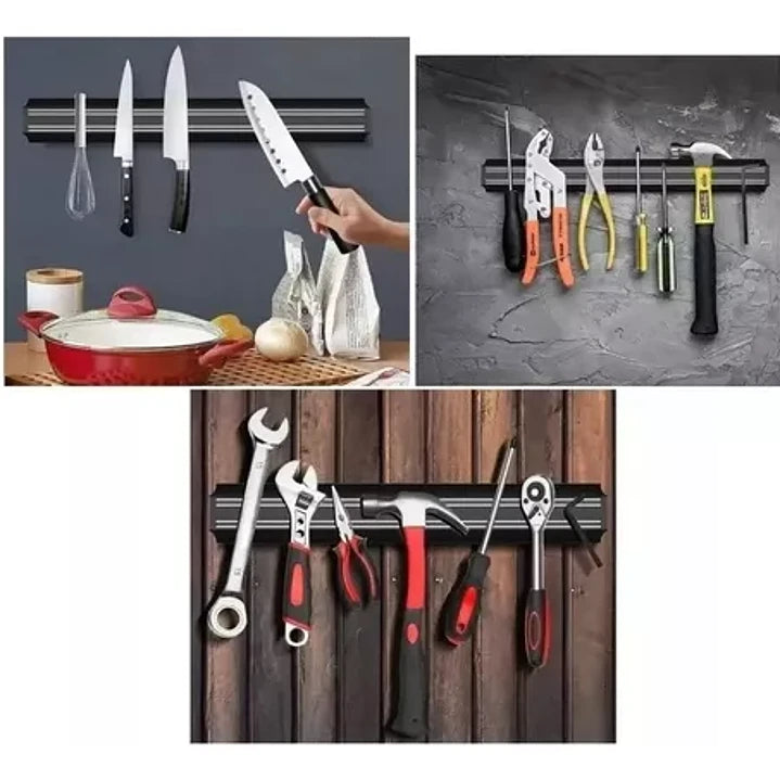 ¡Mantén tus cuchillos y herramientas siempre a la mano con nuestra Barra Magnética Imantada! Una solución innovadora para ahorrar espacio y mantener tus utensilios metálicos ordenados. Optimiza tu espacio en la cocina o taller. Esta herramienta versátil no solo proporciona un almacenamiento eficiente, sino que también garantiza que tus utensilios estén siempre accesibles cuando los necesitas.- Imán Barra Magnética: Con un tamaño perfecto para adaptarse a tus necesidades, esta barra magnética ofrece un amplio espacio para almacenar cuchillos y herramientas esenciales.- Porta Herramientas y Cuchillos: Diseñada específicamente para sostener herramientas y cuchillos metálicos, manteniéndolos organizados como al alcance de la mano.- Ahorro de Espacio: Instálala en la pared para liberar espacio en tu área de trabajo, manteniendo tus utensilios ordenados y evitando la congestión en los cajones.- Fácil Instalación: Se incluyen tornillos y tarugos para una instalación sencilla en cualquier pared, brindando estabilidad.- Diseño Imantado Eficiente: El potente imán asegura una sujeción firme, manteniendo tus herramientas y cuchillos de manera segura, sin riesgos de caídas.