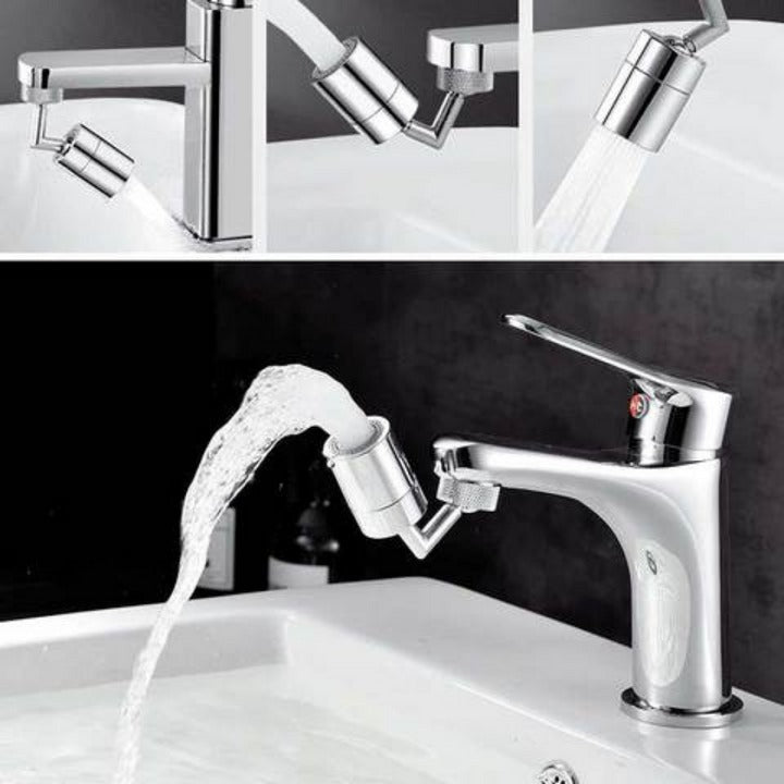 ¡Ahora es más fácil lavar tu rostro en las mañanas!Cada día adoptamos al menos 5 posturas incorrectas para nuestra espalda al lavarnos la cara, las manos y los dientes. Peor aun, usamos recursos anti-higiénicos como vasos y toallas mojadas que nunca terminan de secarse, para acercar el agua a nuestra cara, boca o manos. Sabemos lo incomodo que pueden resultar estas sencillas tareas, es por ello que te recomendamos, gracias a su cabeza giratoria de 720° podrás redirigir el chorro del grifo del lavamanos o lavaplatos en cualquier dirección.Deja este nocivo comportamiento de desperdiciar agua, gracias a la tecnología del cabezal giratorio, podrás ahorrar hasta un 40% en el gasto de agua.Un accesorio para niños y personas mayores: Llegar al grifo puede ser una tarea ardua para los pequeños y mayores de la casa. Evita esfuerzos innecesarios, adapta el grifo hacia la dirección que mas les acomode, !Mas fácil, mas cómodo¡#Llega a cada rincón y deja atrás esos obsoletos grifos rígidos.Por que comprar el Cabezal de grifo para baño Calidad Industrial para uso Comercial: Material resistente, para una mayor durabilidad y longevidad Diseño Seguro y Fácil de Usar: El grifo introduce aire en el chorro para que sea más suave al tacto y no salpique.Adaptable a diversos tipos de grifo: Su rosca es universal, por lo que se adapta a casi cualquier grifo de baño o cocina.Ahorro de agua: Gracias a su cabezal de 720° puedes dirigir el chorro en cualquier dirección, evitando salpicaduras y desperdicios.