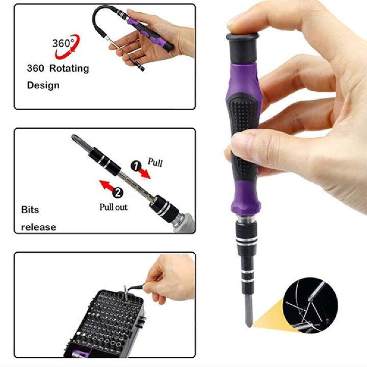 Desarmador MultiTool 115 en 1: Desbloquea el poder de la reparación y recupera lo que necesites.Imagina encontrarte en una situación frustrante donde necesitas reparar un dispositivo electrónico, como tu smartphone o tu computadora portátil. Sin embargo, al intentar desmontar los tornillos, te das cuenta de que no tienes las herramientas adecuadas. Te sientes impotente y dependiente de servicios costosos de reparación.Aquí es donde entra en juego el Desarmador MultiTool 115 en 1. Con nuestra herramienta revolucionaria, no solo obtendrás todas las puntas necesarias para desmontar cualquier dispositivo electrónico, sino que también disfrutarás de la comodidad y la libertad de tener un kit completo en un solo lugar.Versatilidad total:Con 115 puntas diferentes incluidas en un solo kit, este desarmador te brinda la capacidad de desmontar una amplia variedad de dispositivos electrónicos, desde teléfonos móviles y computadoras hasta electrodomésticos y juguetes electrónicos. No importa el tipo de tornillo que encuentres, el MultiTool tiene la punta adecuada para el trabajo.Facilidad de uso:El MultiTool está diseñado pensando en la comodidad del usuario. Las puntas son intercambiables y se pueden cambiar fácilmente según tus necesidades. Además, el desarmador tiene un agarre ergonómico y antideslizante, lo que facilita su uso y proporciona un control óptimo durante las reparaciones.Calidad y durabilidad:El Desarmador MultiTool está construido con materiales de alta calidad, lo que garantiza su durabilidad y resistencia. Las puntas están hechas de acero resistente y duradero, lo que les permite soportar el uso frecuente y resistir el desgaste a lo largo del tiempo.Confianza en tus habilidades:Al tener todas las herramientas necesarias a tu disposición, el MultiTool te brinda la confianza para enfrentar cualquier desafío de reparación. Ya no dependerás de servicios de reparación costosos ni te sentirás limitado en tus opciones. Tendrás la capacidad de solucionar tus propios problemas y disfrutar de la satisfacción de reparar tus dispositivos por ti mismo.