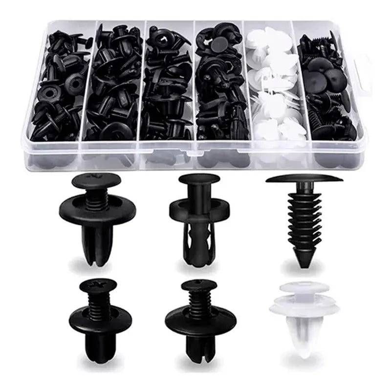 Sujetadores de remaches de nailon adecuados para sujetar faldones laterales, parachoques y otros equipos del vehículo. Estos clips son adecuados para sujetar todo en su lugar con un ajuste adecuado. Los remaches son adecuados para autobuses, trenes, aviones, camiones, caravanas y coches.✅ FUNCIONA PARA CASI TODAS LAS SITUACIONES: el kit contiene múltiples tipos de clips de bloqueo de los tamaños más comunes, adecuados para reemplazo original en tamaños de orificios de 6 a 10 mm y siempre del tamaño correcto.✅ REMACHES DE EMPUJE RESISTENTES A IMPACTOS: Bien hechos de plástico de nailon duradero, no es fácil de romper o agrietar como otras marcas.✅ PERFECTO PARA SUS NECESIDADES: le permiten modificar libremente los accesorios de su vehículo en cualquier momento. Definitivamente es más barato que ir a la tienda de autopartes.✅ REMOVEDOR DE SUJETADORES DUROS: material de plástico y metal robusto con la ventaja de una alta resistencia a la abrasión que le permite quitar el panel de la puerta del automóvil y los clips de tapicería de manera rápida y fácil sin dañarlos. Fácil acceso a espacios reducidos.✅ DISEÑO DE LA CORREA DE FIJACIÓN: la atadura y sujeción rápidas facilitan las reparaciones. Puede lidiar fácilmente con la mayoría de los eventos.✅ DIFERENTES ESPECIFICACIONES: 18 especificaciones, diferentes estilos aplicables.Especificaciones:Tipo: Tipo APeso: Tipo A 500 gTamaño: 27,5 x 5,5 x 17 cm.Material: nailon.Volumen de suministro:Tipo A: 100 piezas