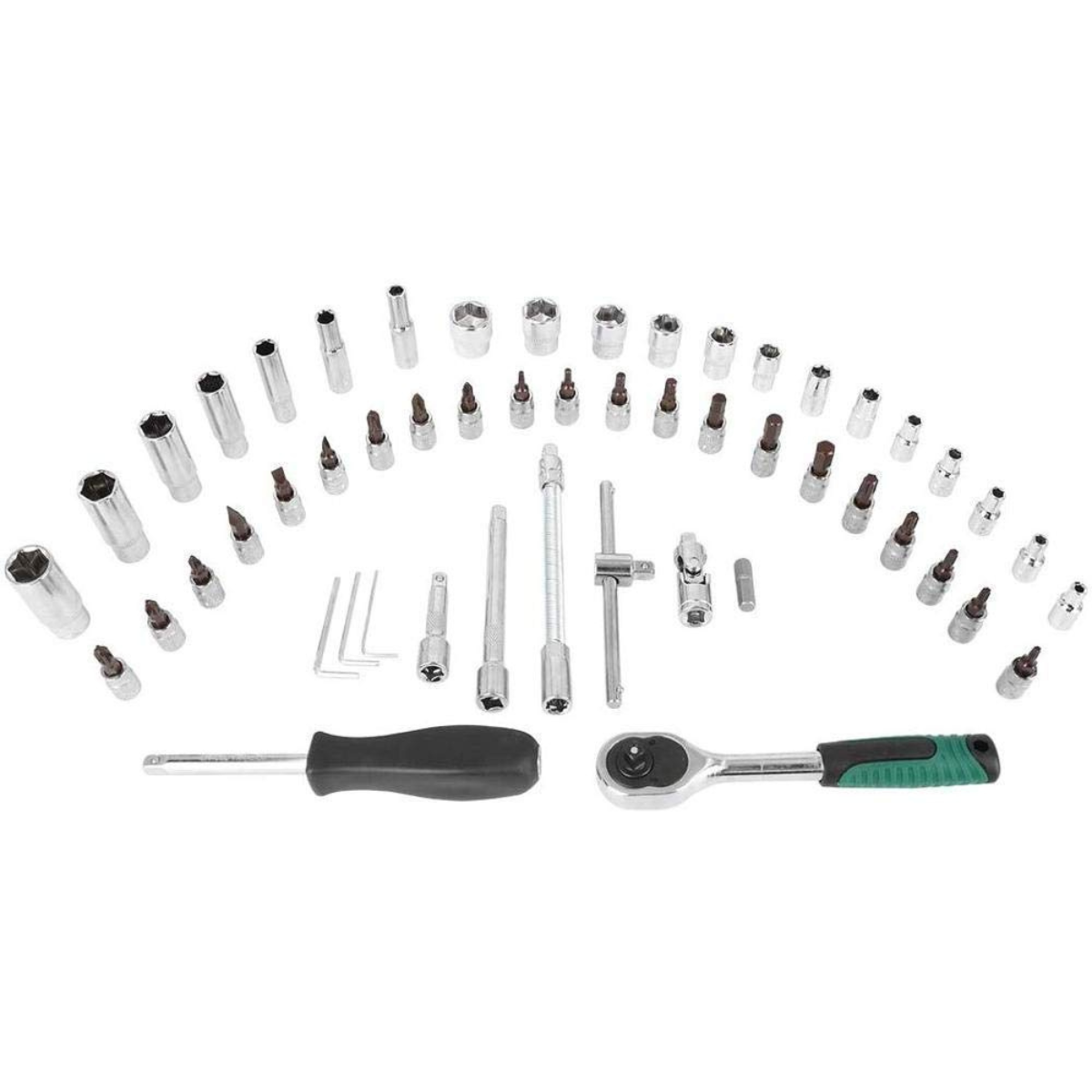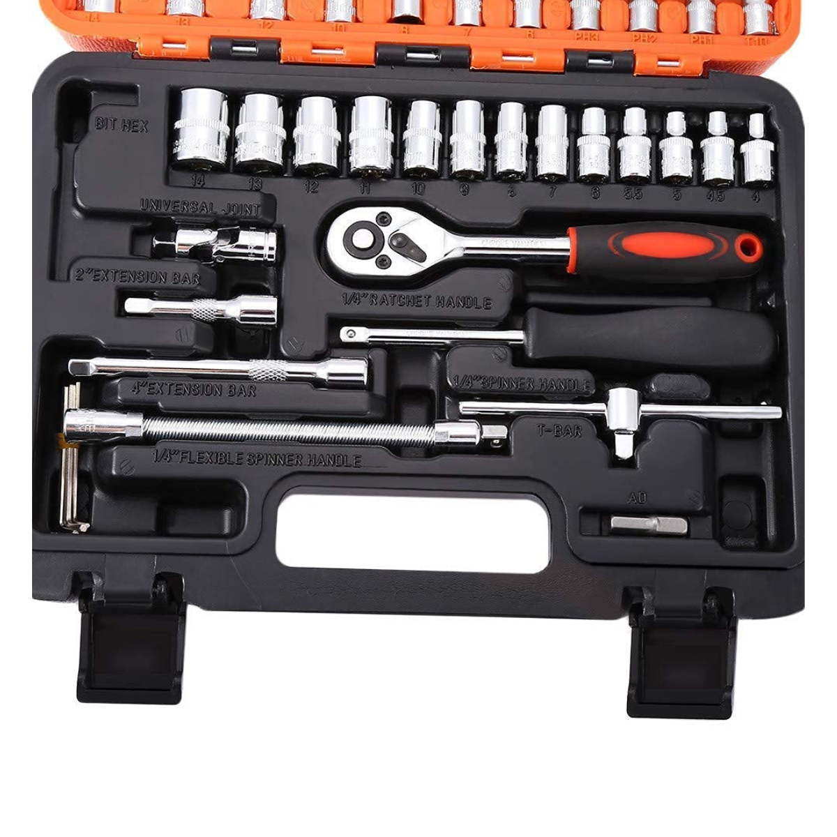 Facilita tus tareas de reparación con nuestra Llave Inglesa con 53 juegos de dados 1/4 mm, un conjunto de herramientas de mano esenciales para cualquier entusiasta de la reparación automotriz. Este conjunto de 40 piezas, con capacidades de 1/4 mm, te proporcionará las herramientas necesarias para abordar una variedad de trabajos de reparación con facilidad.- Conjunto de Llaves de Zócalo Profundo: Diseñadas para alcanzar lugares de difícil acceso, estas llaves de zócalo profundo son ideales para la reparación de componentes automotrices, brindando versatilidad y eficacia.- Herramienta de Reparación HEX: Equipado con una hoja HEX de mano, nuestro conjunto es perfecto para desmontar y reparar piezas automotrices, ofreciendo precisión con rendimiento confiable.- Herramientas de Desmontaje y Reparación Automáticas: Diseñadas para abordar las necesidades específicas de la reparación de vehículos, estas herramientas garantizan una aplicación eficaz y sin complicaciones.- Material de Calidad: Fabricadas con acero al carbono duradero, estas llaves inglesas ofrecen resistencia y durabilidad, asegurando un rendimiento consistente en cada uso.- Antideslizante: La característica antideslizante de nuestras llaves proporciona un agarre seguro, facilitando el manejo de las herramientas incluso en condiciones exigentes.- Incluye: El estuche incluye 19 piezas de llaves de vaso de 6 puntos en tamaños de 8, 9, 10, 11, 12, 13, 14, 15, 16, 17, 18, 19, 20, 21, 22, 24, 27, 30 y 32 mm, además de 6 piezas de llaves de vaso de 12 puntos.