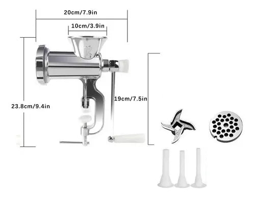Descripción: La funcionalidad versátil mejora tu experiencia culinaria: esta picadora de carne ofrece múltiples posibilidades a la hora de procesar varios ingredientes, desde carnes para pasteles de carne caseros hasta especias y alimentos para bebés, lo que mejora la cocina sin comprometer la calidad ni la comodidad. El diseño elegante se combina con una construcción robusta: fabricado con una aleación de aluminio de alta dureza mediante una fundición precisa, el molinillo presume de un aspecto atractivo y una resistencia. Junto con una cuchilla de material de alta calidad, promete una nitidez y una solidez esenciales para un afilado eficiente. Afilado eficiente con ergonomía: con un mecanismo de extrusión en espiral de cinco segmentos que imita el batido manual, la amoladora garantiza su uso. Su mango ergonómico, diseñado según el principio de la palanca, hace que su manejo sea sencillo y fácil de usar, ideal para las tareas frecuentes de la cocina doméstica. Tamaño compacto para un almacenamiento cómodo: con unas dimensiones de aproximadamente 13 x 22 cm y un peso de alrededor de 573 g, este molinillo compacto está diseñado para caber cómodamente en la mayoría de los espacios de la cocina. Su tamaño manejable facilita el almacenamiento cuando no está en uso, y se adapta a cocinas de todos los tamaños sin abrumar las encimeras.