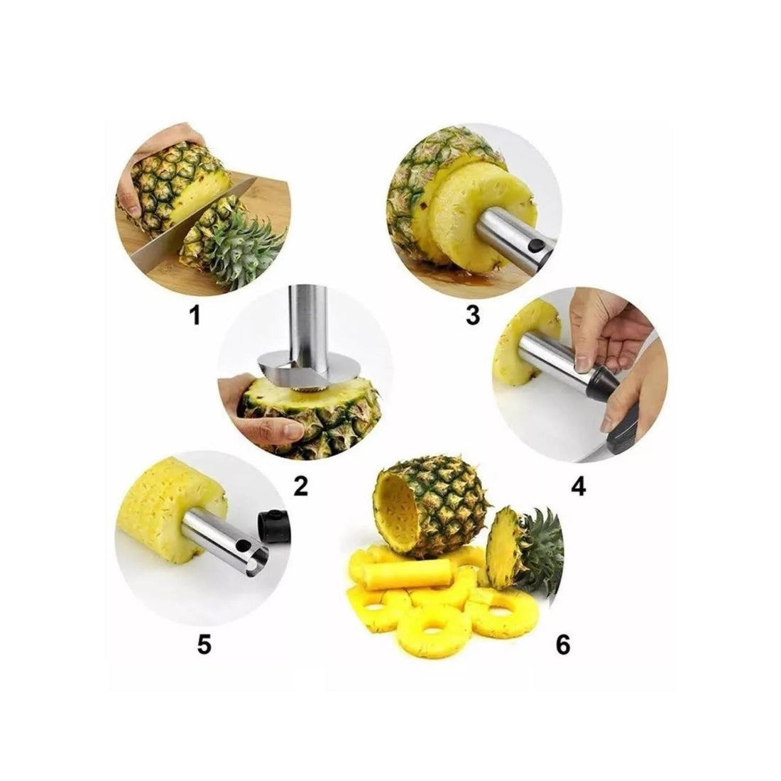 PELADOR Y REBANADOR DE PIÑAS DE ACERO INOXIDABLE No vuelvas a perder la 🍍 que compraste sólo por la molestia de picarla✅ Compra piña natural, deja de gastar dinero en piñas envasadas.✅ No te lastimes más las manos picando 🍍 ✅ Prepara los tragos más dulces para tus amigos o en tu bar 🍸 Cortar una piña dejará de ser algo agotador con este utensilio. En 30 segundos tendrás trozos de piña fresca 🤩 Hazlo fácil de disfrutar ✅ Girar para quitar la piel: Con mango de trinquete que hace que cubrir las piñas sea fácil y rápido. La perilla giratoria tiene un mango cómodo y antideslizante se separa del eje para facilitar la limpieza.✅ Cree una rodaja a la vez o corte la fruta entera: mantenga la piña fresca, almacene el jugo de fruta, prepare fácilmente trozos de piña listos para comer. ¿Cómo usar? ¿Cómo te beneficiarás? 🍍 Los días calurosos ya no serán un sufrimiento si tienes un rico jugo de piña recién cortada.🍍 La piña es una fruta especial porque al consumirla todos los días reduce la ansiedad. 🍍 Disfruta unos ricos tragos con tus amigos. 🍍 Es una fuente rica de calcio y hierro, además tiene un efecto positivo en la pérdida de grasa corporal. Especificaciones Material: acero inoxidable + ABSPeso: 120gMedidas: 18×9×9cm