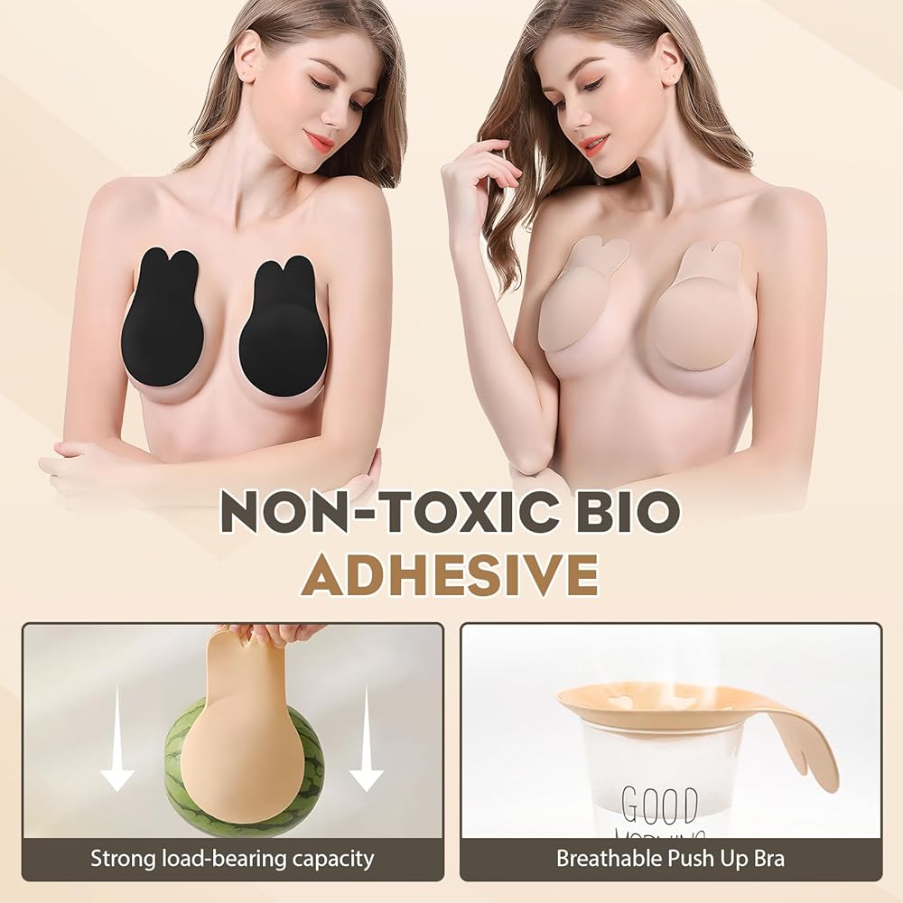 Características: Las cubiertas de pezón de sujetador reutilizables sin tirantes para mujer crean un pecho encantador en forma de V profunda. Hecho de silicona médica autoadhesiva, respetuoso con la piel, no deja rastro en la piel después de la eliminación. 2 alas laterales únicas, empuja hacia arriba el pecho y proporciona un aspecto suave mientras sostiene y mejora su forma. look transparente, noche, etc. Especificación Tipo: sujetador adhesivo invisible Material: silicona Características: Levantamiento de senos, Reutilizable, Invisible Color: negro y beigeTamaño: 11cm